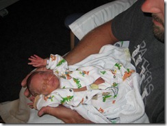 Lincoln was one month old on September 15th! At one month he weighed 6lbs 1oz. I did the best we could with a little photo shoot on daddy at the hospital!